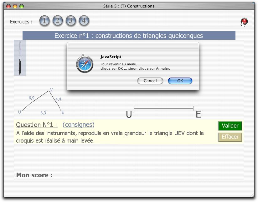 Pour quitter l'exercice, il suffit de cliquer sur le bouton rouge et de valider.
